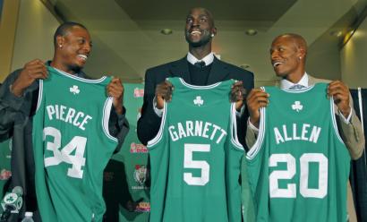 -If you think I'm going to go out of my way this year to watch as many Celtics as I possibly can, i think you're right. KG won't know what to do with PLAYERS wearing the same jersey as him. I'm intrigued to know what this will do to his fantasy numbers, but Daddy says they're going up. He's such a performer that he would never want to be perceived as the weak link, even surrounded by two other superstars.